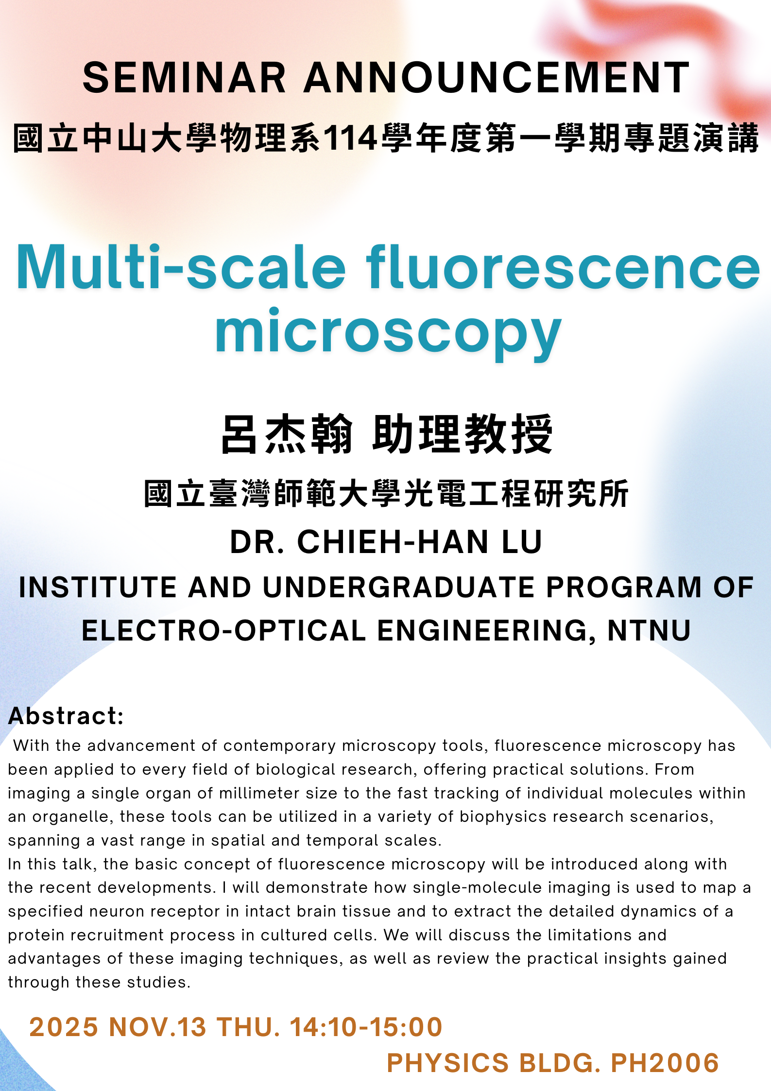 物理系本週演講114.11.13 : 呂杰翰 助理教授